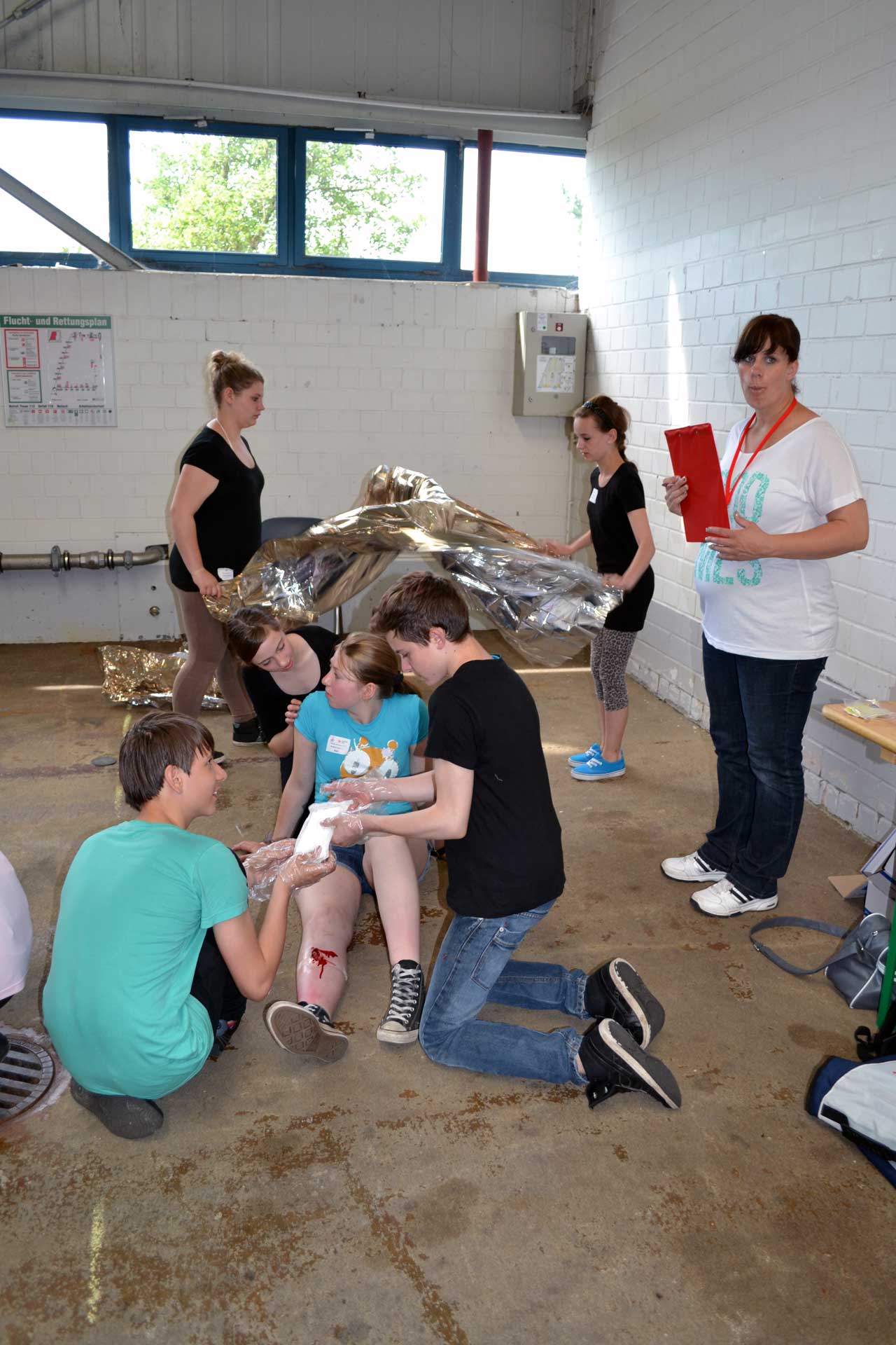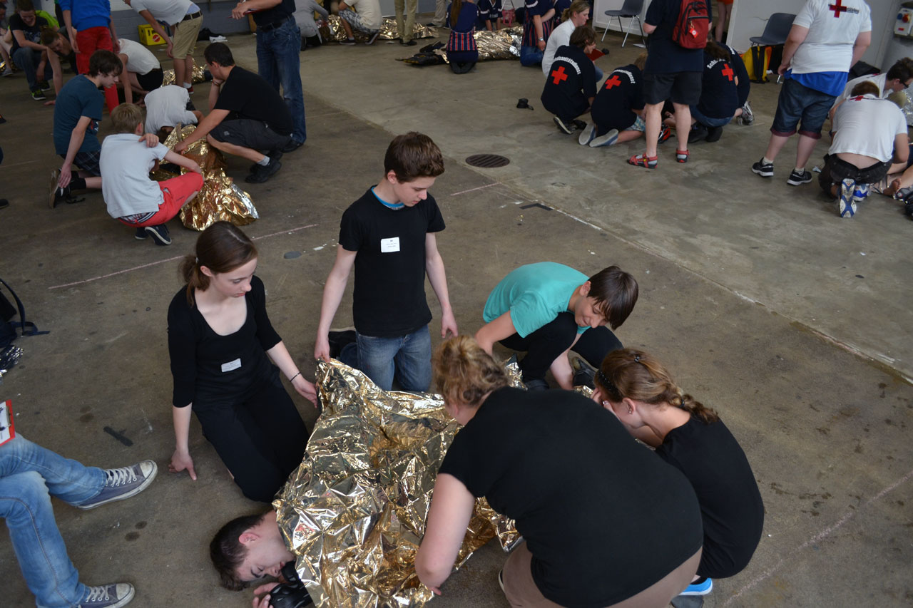 Neben einem bewusstlosen Inlineskater, einer starken Blutung am Unterarm, einem offenen Schienenbeinbruch und einem Herzinfarkt gab es auch zwei angetrunkene Jugendliche zu versorgen. Besonders gut agierte die Gruppe bei einem Verkehrsunfall, bei dem eine Person aus dem Auto geborgen und mit einem Kopfverband versehen wurde.