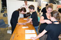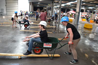 Neben der Ersten Hilfe gab es auch einige Spiele und Aufgaben, die das Geschick und Wissen der Schüler forderten. Zusätzlich hatten verschiedene Handwerker Aufgaben vorbereitet. So gab es einen Autoreifen zu wechseln, verschiedene Rohrelemente nach einem Bauplan zusammen zu stecken und einen Parcours mit der Schiebkarre zu bewältigen.